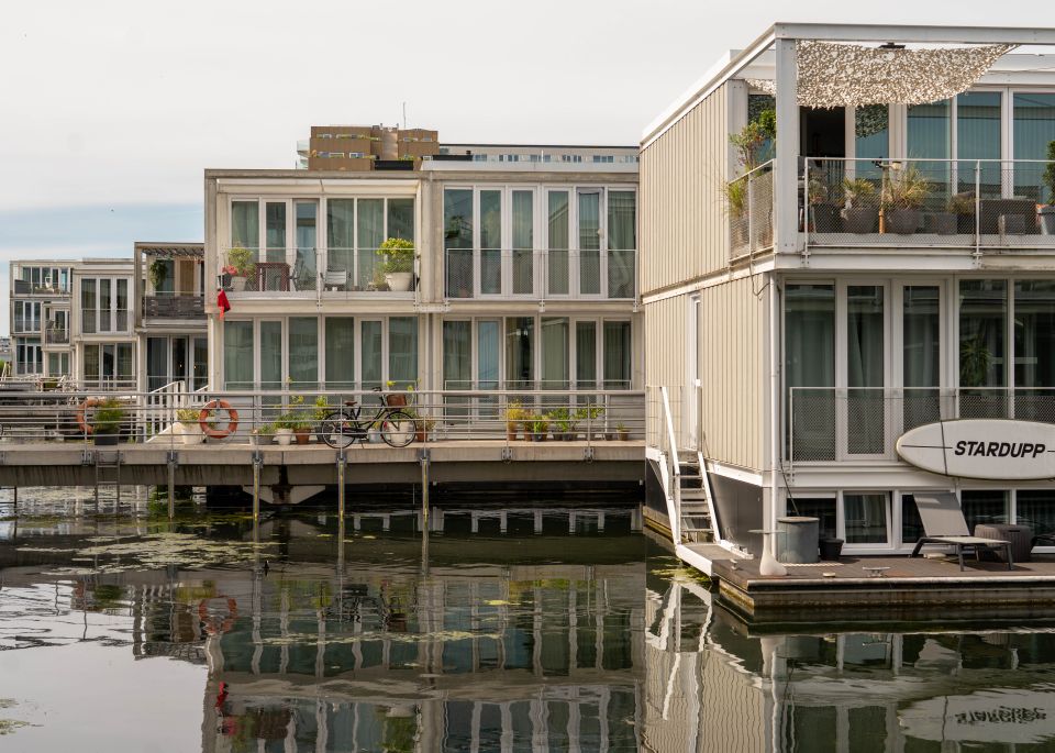 Eén stad uitgezonderd: Amsterdam. De stad telt een kleine drieduizend ligplekken; bij de ontwikkeling van nieuwe woonbuurten wordt het water niet geschuwd. De Waterbuurt op het eilandenrijk IJburg in Oost telt al meer dan tien jaar 55 drijvende woningen. En in het Johan van Hasseltkanaal in Amsterdam Noord heeft wooncoöperatie Schoonschip 46 duurzame woningen gerealiseerd. Deze Nederlandse ervaring inspireert wereldwijd. De drijvende stadswijk Oceanix in Busan, Zuid-Korea, zal in de eerste fase 12.000 inwoners huisvesten, met mogelijke uitbreiding naar 100.000 bewoners. Dergelijke projecten tonen aan dat drijvend bouwen kan opschalen van experimentele buurten naar complete drijvende stadsdelen.