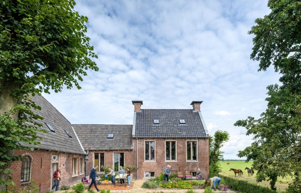 Een ander mooi voorbeeld waarbij langetermijndenken, ecologie en welzijn de pijlers vormen onder ontwikkeling van boerenland is Nijkleaster Westerhûs in het Friese dorp Hilaard. Hier kocht een groep hoopvolle enthousiastelingen een kop-hals-boerderij vanuit het idee er een Kop-hals-klooster van te maken. De leegstaande boerderij kreeg een functie die naadloos aansluit bij de sociale opgave van het platteland: het verdwijnen van voorzieningen en plekken om samen te komen. Het project is echter niet alleen gericht op de mens. Sterker nog, de grondslag van de gemeenschap is dat ze zorgdraagt voor de heelheid van de schepping. Vanuit zo’n principe is duurzaam ontwikkelen geen keuze, maar een vanzelfsprekendheid. Ingrepen in de waterhuishouding zorgden er dan ook voor dat het steeds schraler wordende Friese landschap hier voor plant, mens en dier weer gezond is geworden. Zo zorgde een enkel transformatieproject ervoor dat verschuivingen ver voorbij de eigen schaal merkbaar zijn. Het project won er in 2024 de NRP Gulden Feniks om.