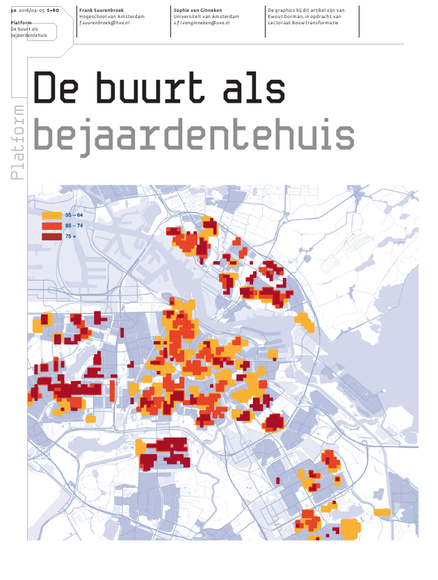 In de vier grote steden groeit het aantal ouderen, terwijl landelijke gemeenten vergrijzen. Dit stelt andere eisen aan stedelijke voorzieningen, structuren en verbindingen. Door het verdwijnen van verzorgingshuizen wordt de fysieke omgeving belangrijker. Maar juist op buurtniveau zien Frank Suurenbroek en Sophie van Ginneken een verschraling van voorzieningen en gebrek aan eigenaarschap. Hoe blijft de stad leefbaar voor de vele ouderen die langer zelfstandig thuis blijven wonen?