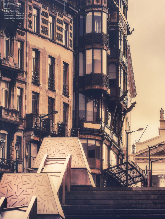 42 2016/03 S+ROThemaUrban AgendaCultuur maakt ruimte voornoodzakelijke doorbrakenin ruimtelijke ontwikkelingS+RO 2016/03 43ThemaUrban AgendaCultuur maakt ruimte voornoodzakelijke doorbrakenin ruimtelijke ontwikkelingMont des Arts, Brussel. Foto: LucMercelis Public Domain Mark 1.0Joachim DeclerckArchitecture Workroomjdeclerck@architectureworkroom.eu`Brussel, een kleine wereldstad inonze gezamenlijke Eurodelta, die opde tweede plaats staat in een rankingvan economisch meest performanteregio's in Europa. Het is de stad waarik woon, van waaruit en waaraan ikwerk.' Joachim Declerck vertelt over deverschillende werelden in deze Euro-pese wereldstad, de rol van Nederlandals gidsland en de actieagenda voor dekomende jaren.Brussel doet het erg goed. Culinair,cultureel en creatief is het een explo-sie van binnen-en buitenlands talent.Het is een geopolitiek knooppunt: dehoofdstad van Europa, van NGO's, vande NAVO, van Belgi?, van Vlaanderen,en van nog veel meer. Daarbij horennatuurlijk hoofdkantoren van advoca-ten, consultants en lobbyisten. En eenoptimale toegankelijkheid vanuit hethele land: met de grote bedrijfswagen(die als voordelig deel van het loon doorde overheid wordt gesubsidieerd) vande veel te grote individuele woning ?de fermettte of `boerderette'? naarde ondergrondse parkeergarage. Vandaaruit de lift in naar je kantoor ofvergaderzaal, naar het appartementdat je tijdens de week gebruikt of dat jeaan expats verhuurt, of naar het over-dekte shoppingcenter of de gezelligewinkelstraat vol generieke retailshops,chocolade en bier. Een stad van steedsmeer ordinaire vastgoedproducten dieheel belangrijke publieke instellingenhuisvesten -- een eigen wereld die goedis verbonden met de groene, verkavelderegio, ?n met andere economische engeopolitieke knooppunten in Europa endaarbuiten. Die aparte, aantrekkelijkewereld bouwen voor instellingen endiensteneconomie, is waar we voorhebben gekozen. Die promoten we inhet buitenland als hyperaantrekkelijkvestigingsmilieu voor nog meer bedrij-ven en instellingen. En het werkt. Hetheeft Brussel en Belgi? geen windeierengelegd.Andere wereldMaar naast en tussen die realiteit vande dienstenstad liggen nog stukkenstad. Gebieden waar de activiteitendie niet passen in de stad van diensten,parken, lanen en veel bier en cappuc-cino, zijn gehuisvest: zoals de tweede-handsautohandel, de vroegmarkt voorgroenten en fruit, de verbranding enrecylage van afval en grondstoffen, deinvoer en opslag van bouwmaterialen,en ga zo maar door. En daarrond: voor-malige arbeiderswijken. Delen van destad waar de diversiteit zo mogelijk noggroter is dan in het kosmopoliete ex-patdeel van Brussel, maar waar het ge-middelde maandloon slechts een fractieis van wat die andere stad verdient. Indie wijken tussen en achter de toevoer-wegen voor de institutionele stad, zijner 17 keer minder sportvoorzieningendan in een gemiddelde Belgische stad,is de helft van de jongeren tussen 18en 25 werkloos, en is de kwaliteit vande woningen de laagste van Europa.Tussen 2010 en 2030 kent Brussel eenbevolkingsgroei ter grootte van de stadAntwerpen ? voor >>Cultuur maakt ruimte voornoodzakelijke doorbraken inruimtelijke ontwikkeling44 2016/03 S+ROThemaUrban AgendaCultuur maakt ruimte voornoodzakelijke doorbrakenin ruimtelijke ontwikkelinghet overgrote deel ontstaat en landt diegroei in dit deel van de kleine wereld-stad. Boven dit meest dicht bebouwdedeel van Belgi? vliegen de logistiekenachtvluchten vanuit Zaventem. Uit ditdeel van Brussel komen ook de jongerendie op 22 maart 2016 de vertrekhal vandie luchthaven ?n een metrostationonder de Europese wijk tot ontploffingbrachten.Sociale en maatschappelijkeagendaHet is te gek voor woorden om deorganisatie en ontwikkeling van de stadals oorzaak voor deze barbaarse dadente noemen. Er is veel meer aan de handdan de fysieke en sociale ruimte enorganisatie. Maar ook het omgekeerdeis waar: we kunnen de manier waaropwe de stad ontwikkelen, ook niet loskoppelen van barslecht onderwijs enweinig voorzieningen, van slechtewoonkwaliteit en de negatieve impactvan infrastructuur en mobiliteit, vanhet feit dat de industrie en plekkenvoor tewerkstelling van kortgeschool-den steeds verder uit de stad wordengeduwd ? omdat die gronden veel meerkunnen opbrengen als er nieuwe wonin-gen of kantoren worden gebouwd. Dehoofdstad van instellingen, diensten-economie en consumptie gold als deenig denkbare en maakbare toekomst.Dat perspectief wankelt vandaag opzijn grondvesten. Naar aanleiding vandeze gebeurtenissen moeten we nogdringender en explicieter de sociale enmaatschappelijke agenda van de stads-ontwikkeling in vraag stellen, herden-ken en herijken. Dat is even beangsti-gend als noodzakelijk, even uitdagendals motiverend.Gidsland reduceert zichzelftot exportproductEn dat brengt me bij vandaag, bij Neder-land en de Hollandse architectuur- enbouwcultuur. Nederland was op dievlakken een gidsland. Architectuurwerd namelijk niet eng ge?nterpreteerd.Het ging niet alleen over het tonenvan prachtige, singuliere objecten diedoor architecten hier of elders werdengebouwd. Er was meer: architectuuren ruimtelijk ontwerp waren ook eenmiddel bij uitstek om vooruit te blikken,om te verkennen hoe de maatschap-pij ? via zijn ruimtelijke organisatie enkwaliteit ? de opgaves en kansen in eensnel veranderende wereld kon grijpenen maken. Daarbij werd er ? in mijnideale lezing van dat gidsland ? continugezocht en ontworpen aan een verbandtussen dat wat werd gebouwd en eenmobiliserend maatschappijbeeld. Geenrelevante bouwcultuur zonder datcontinu?m tussen die brede vooruitblik?n de gebouwde, fysieke realiteit. Geenarchitectuurcultuur zonder voortdu-rend en iteratief bouwen ? letterlijk enfiguurlijk ? aan een sociale en maat-schappelijke agenda.Het geloof van de architectuurcultuurin die eigen maatschappelijke betekenisen waarde in en voor Nederland, is devoorbije jaren erg verzwakt. De krachtvan het internationale merk `DutchDesign' nam de bovenhand. Een relatiefklein clubje architecten en hun culturele