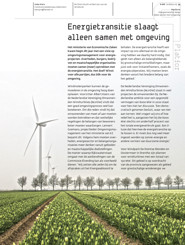 Het ministerie van Economische Zaken kwam begin dit jaar met een visie op omgevingsmanagement voor energieprojecten. Overheden, burgers, bedrijven en maatschappelijke organisaties moeten samen (meer) optrekken met de energietransitie. Het doel? Winst voor alle partijen, dus óók voor de omgeving.