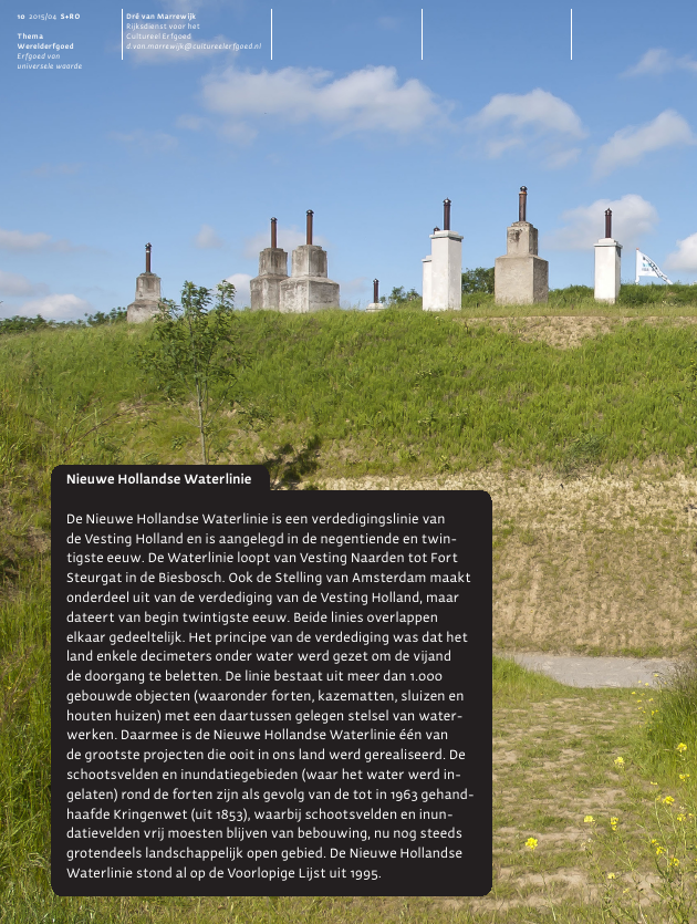 10 2015/04 S+ROThemaWerelderfgoedErfgoed vanuniversele waardeDr? van MarrewijkRijksdienst voor hetCultureel Erfgoedd.van.marrewijk@cultureelerfgoed.nlNieuwe Hollandse WaterlinieDe Nieuwe Hollandse Waterlinie is een verdedigingslinie vande Vesting Holland en is aangelegd in de negentiende en twin-tigste eeuw. De Waterlinie loopt van Vesting Naarden tot FortSteurgat in de Biesbosch. Ook de Stelling van Amsterdam maaktonderdeel uit van de verdediging van de Vesting Holland, maardateert van begin twintigste eeuw. Beide linies overlappenelkaar gedeeltelijk. Het principe van de verdediging was dat hetland enkele decimeters onder water werd gezet om de vijandde doorgang te beletten. De linie bestaat uit meer dan 1.000gebouwde objecten (waaronder forten, kazematten, sluizen enhouten huizen) met een daartussen gelegen stelsel van water-werken. Daarmee is de Nieuwe Hollandse Waterlinie ??n vande grootste projecten die ooit in ons land werd gerealiseerd. Deschootsvelden en inundatiegebieden (waar het water werd in-gelaten) rond de forten zijn als gevolg van de tot in 1963 gehand-haafde Kringenwet (uit 1853), waarbij schootsvelden en inun-datievelden vrij moesten blijven van bebouwing, nu nog steedsgrotendeels landschappelijk open gebied. De Nieuwe HollandseWaterlinie stond al op de Voorlopige Lijst uit 1995.Fort Asperen, Nieuwe HollandseWaterlinieFoto: Frank van Laanen, CC BY 2.0S+RO 2015/04 11ThemaWerelderfgoedErfgoed vanuniversele waarde>>Erfgoedvanuniverselewaarde12 2015/04 S+ROThemaWerelderfgoedErfgoed vanuniversele waardeDe werelderfgoedstatus geeft eenland of plaats niet alleen aanzien, maarspeelt ook bij ruimtelijke ontwikkelin-gen een steeds belangrijker rol.Meestal als aanleiding en kans voor hetrealiseren van onderscheidende kwali-teit, in een enkel geval als obstakel. Eris ook een keerzijde: terroristen wetenmet een aanslag op werelderfgoedmaximale media-aandacht te bereiken.Hoe maakt een land de verantwoorde-lijkheid voor het behoud van de univer-sele waarde van het erfgoed waar?In juni van dit jaar nam het Werelderf-goedcomit? van UNESCO tijdens zijnjaarlijkse vergadering de `Verklaringvan Bonn' aan. Daarin veroordeelden delanden unaniem de barbaarse aanvallen,het geweld en de misdrijven die Islami-tische Staat recent pleegde tegen hetcultureel erfgoed van Irak en Syri?. Ooksprak het comit? zijn zorgen uit over dedreigende vernietiging van plaatsen alsPalmyra in Syri? en de oude stad Sana'ain Jemen. Verder bevat de verklaring deaanbeveling om de bescherming vancultureel erfgoed een regulier onder-deel te maken van het mandaat vanvredesmissies. Enerzijds was dit eenkrachtig signaal naar de wereld datdergelijk bruut geweld tegen kwetsbaaren uiterst waardevol erfgoed niet geac-cepteerd wordt. Anderzijds was heteen teken van machteloosheid: ieder-een gruwt van de beelden van erfgoeddat moedwillig wordt vernietigd, maarniemand is bereid of in staat er tegenop te treden. Het is de keerzijde van hetgrote succes van de werelderfgoed-status: ook terroristen in Syri? of Maliweten dat met een aanslag op werel-derfgoed maximale media-aandachtkan worden bereikt.Ondanks dit misbruik kan het Werel-derfgoedverdrag succes niet ontzegdworden. Minder dan veertig jaar nade eerste inschrijvingen staan er nu1031 bouwwerken, stedelijke gebie-den, cultuurlandschappen en natuur-gebieden op de Werelderfgoedlijst.Die vari?ren van bekende iconen alsSerengeti en de Chinese Muur, GreatBarrier Reef en Machu Picchu, totaan veel minder bekende juweeltjesals de Namibische zandwoestijn, hetcultuurlandschap van Grand Pr? inCanada, de Meidan Emam in Isfahan,Iran, of de stad Matera in het ItaliaansePuglia. De werelderfgoedstatus wordtbegeerd, ??k omdat het toeristentrekt en dus geld in het laatje brengt,maar zeker ook omdat het een land ofplaats status verleent. Met ??n, tien ofvijftig werelderfgoederen tel je mee!Het verklaart waarom landen staan tedringen om weer een nieuwe inschrij-ving te verwerven ? Itali? is koplopermet in totaal 51 werelderfgoederen ? enwaarom er ieder jaar wel weer ??n oftwee landen hun allereerste nominatiebekroond zien worden, dit jaar Jamaicaen Singapore.Uitzonderlijkeuniversele waardeInmiddels hebben 191 staten het`Verdrag voor de bescherming van hetnatuurlijk en cultureel erfgoed in dewereld' uit 1972 ondertekend. Daarmeebeloven deze landen hun natuurlijk encultureel erfgoed te inventariseren,te beschermen, te behouden, toegan-kelijk te maken en over te dragen aantoekomstige generaties. Erfgoederenvan uitzonderlijke universele waardekunnen worden voorgedragen voor eenplek op de Werelderfgoedlijst. Daarvoormoeten deze erfgoederen aan tenmin-ste ??n van de tien criteria voldoen, alsook aan de vereisten van integriteit enauthenticiteit, en ze moeten afdoendebeschermd en beheerd zijn.1 De interna-tionale organisaties International Unionfor the Conservation of Nature (IUCN)voor natuur en International Councilon Monuments and Sites (ICOMOS)voor cultuur adviseren het Werelderf-goedcomit? van UNESCO of aan dezevereisten wordt voldaan. Het Werel-derfgoedverdrag verplicht de lidstatende doelen van het verdrag te waarbor-gen voor zover het werelderfgoed ophun grondgebied ligt.In het Koninkrijk der Nederlanden heb-ben tien erfgoederen de horde naar dewerelderfgoedstatus inmiddels geno-men. De Van Nellefabriek was in 2014de laatste die deze erkenning verwierf;eerder waren Schokland en omgeving(1995), de Stelling van Amsterdam(1996), Historisch Willemstad (Cura?ao)en het molencomplex van Kinderdijk-Elshout (1997), het ir. D.F. Woudagemaal(1998), Droogmakerij de Beemster (1999),het Rietveld-Schr?derhuis (2000), deWaddenzee (2009; samen met Duits-land en, in 2014, met Denemarken) en deGrachtengordel van Amsterdam (2010)die eer te beurt gevallen. De Nederland-se voordrachten zijn representantenvan drie nationale thema's: NederlandWaterland, Nederland als burgersamen-leving en Nederland als ontworpen land.Duurzame instandhoudingEenmaal op de Werelderfgoedlijst blijfter de plicht het erfgoed te beheren`for futur