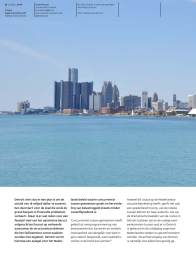 38 2015/01 S+ROThemaAgglomeratiekrachtFaillissement DetroitDe foto's bij dit artikel zijn gemaaktdoor Brian DoucetFoto: Skyline van DetroitBrian DoucetUniversiteit Utrechtb.m.doucet@uu.nlwww.detroit-matters.com@bmdoucetDetroit viert dat er een plan is om deschuld van 18 miljard dollar te saneren.Een doorstart voor de stad die sinds degrand bargain in financi?le problemenverkeert. Maar is er wel reden voor eenfeestje? Veel van het optimisme berustvolgens Brian Doucet op verkeerdeaannames; de structurele problemendie het faillissement veroorzaaktenworden niet opgelost. Detroit vormthiermee een spiegel voor het Neder-lands beleid waarin concurrentietussen gemeenten groeit en herverde-ling van belastinggeld steeds mindervanzelfsprekend is.`Concurrentie tussen gemeenten heeftgeleid tot overprogrammering vanbedrijventerrein, kantoren en winkels.Overaanbod van dergelijk voorzienin-gen cre?ert leegstand, wat kwaliteits-verlies in de hand kan werken'.1Hoewel dit citaat op de Nederlandsesituatie betrekking heeft, geeft het ookeen goede beschrijving van de relatietussen Detroit en haar suburbs. Als wede dramatische beelden van de ru?nes inDetroit loslaten zijn er de nodige over-eenkomsten tussen wat er in Detroitis gebeurd en de uitdaging waarmeeNederlandse steden nu geconfronteerdworden. De achteruitgang van Detroitis namelijk niet alleen het gevolg ge-S+RO 2015/01 39ThemaAgglomeratiekrachtFaillissement DetroitFaillissement Detroitspiegel voorNederlands beleidvan 1,8 miljoen inwoners in 1950, isde stad nu geslonken tot minder dan700.000 inwoners, slechts een derdevan het demografisch hoogtepunt. Tus-sen 2000 en 2010, vertrokken er maan-delijks zo'n 1.000 inwoners uit de stad.E?n op vier overgebleven bewoners ver-trok alsnog gedurende dit decennium.2In dezelfde periode vertrok 50 procentvan de 5 tot 9-jarigen uit de stad; deouders verkozen betere buurten enscholen in de randgemeenten. Het iszorgwekkend dat de stad van de `Ameri-can Dream' met ooit de beste scholen enhet hoogste percentage woningbezit nubovenaan staat op de lijst van slechtstescholen en bekend is om buurten dieweggevaagd zijn door `foreclosure', hetzonder restschuld verlaten van een huisdat onder water staat.Een groot deel van de stad is leeg. Erzijn bijna 85.000 vervallen panden, dielang niet allemaal een woning zijn. Erzijn ook nog maar twee assemblagehal-len voor de autoproductie, terwijl dater in de hoogtijdagen ongeveer twintigwaren. Deze exodus van banen heeftgeleid tot een kloof tussen werknemersen werkgevers in de gehele regio. Zo'n60 procent van de werkende Detroiterswerkt buiten de stad (bijvoorbeeld in dedienstensector in de suburbs), terwijl 70procent van het werk in de binnenstadgedaan wordt door mensen die buitende stad wonen. In Detroit is er geen en-kel warenhuis. Dus wie in de stad woonten wil gaan winkelen (om bijvoorbeeldeen paar sokken te kopen), moet naar derandgemeenten. >>weest van de-industrialisatie en racialespanningen. Een belangrijke rol bij deachteruitgang speelde de afwezigheidvan een regionaal bestuursorgaan, ende sterke competitie tussen steden ineen context van een stabiele bevolking.Deze zaken zijn erg relevant, ook in Ne-derland. Stedelijk beleid, economischeontwikkelingen en demografische ont-wikkelingen zorgen ook in Nederlandvoor competitie tussen steden en medeals gevolg daarvan voor een overschotaan kantoor- en winkelruimte. In deregio Detroit heeft de overproductievooral plaatsgevonden in de woning-sector en dat heeft gezorgd voor debekende plaatjes van de ru?nes in debinnenstad. Inherent aan competitie isdat het leidt tot winnaars en verlie-zers. Detroit, ooit ??n van de rijkste enmeest innovatieve steden ter wereld,laat zien wat er met een stad gebeurtals het deze competitie verliest.Schuldsanering alssymptoombestrijdingGroot nieuws, het plan voor saneringvan de schulden van Detroit. De stadis weer onder controle van de demo-cratisch gekozen burgemeester en hetgemeentebestuur en bovenal draagtde stad niet langer de lasten van deenorme schulden, die in de loop derjaren zijn opgelopen tot 18 miljard dol-lar. Maar met het plan wordt voorbijgegaan aan het feit dat Detroit terechtis gekomen in een neerwaartse spiraal,die resulteerde in het grootste stede-lijke faillissement ooit in de VerenigdeStaten. Als de problemen die ten grond-slag liggen aan het faillissement nietworden opgelost, is de kans aanwezigdat de stad wederom failliet gaat. Inplaats van een schone lei is Detroitslechts behandeld voor een symptoomvan een groter structureel probleem.Detroit is slachtoffer van een onover-troffen daling in bevolking, banen eneconomische activiteit. Sinds de piek40 2015/01 S+ROThemaAgglomeratiekrachtFaillissement DetroitTwee fotos van links : Concurrentietussen stad en suburbs zorgt vooroverproductie van woningen.Foto midden : Detroit kent meer danvijftig jaar de-industrialisering enverlies van banen en fabrieken.Ook is er slechts ??n nationaal bekendesupermarkt in Detroit, terwijl er meerdan 400 liquor stores zijn. Dit zijn kleine(buurt)winkels die drank en ongezondvoedsel verkopen. Het feit dat demeeste inwoners hier hun voedsel ko-pen, draagt bij aan de slechte score vande stad op het gebied van obesitas.Concurrentie tussen stad ensuburbsDe economische en demografischeneergang van Detroit wordt erger van-wege het Amerikaanse overheidssys-teem waar er vrijwel geen gelijkmatigeverdeling van belastinginkomsten is.Detroit concurreert met haar suburbsvoor banen, inwoners, bedrijven enkapitaal. Er is geen herverdeling tus-sen de arme stad Detroit en de rijke`suburbs', die zelfstandige gemeentenvormen. Vanwege het gebrek aan be-drijven, winkels en industrie in de stadligt de belastingdruk onevenredig bijde inwoners, die de hoogste inkomens-belasting van heel de staat Michiganbetalen.3 In de Verenigde Staten zijnlokale overheden namelijk zelf finan-cieel verantwoordelijk voor lokalevoorzieningen zoals politie en openbaarvervoer. Deze moeten worden betaaldvan het belastinggeld uit de stad zelf.Er is geen equ