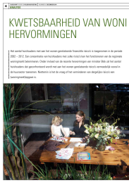 Het aantal huishoudens met aan het wonen gerelateerde financiële risico’s is toegenomen in de periode 2002 – 2012. Een concentratie van huishoudens met zulke risico’s kan het functioneren van de regionale woningmarkt belemmeren. Onder invloed van de recente hervormingen van minister Blok zal het aantal huishoudens dat geconfronteerd wordt met aan het wonen gerelateerde risico’s vermoedelijk vooral in de huursector toenemen. Niettemin is het de vraag of het verminderen van dergelijke risico’s een (woningmarkt)opgave is.