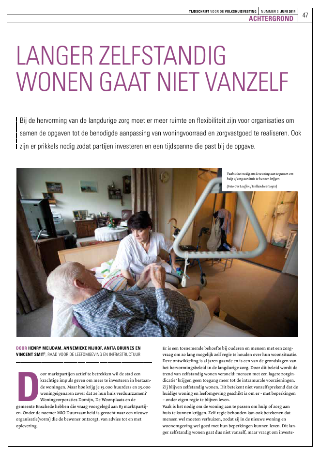 Bij de hervorming van de langdurige zorg moet er meer ruimte en flexibiliteit zijn voor organisaties om samen de opgaven tot de benodigde aanpassing van woningvoorraad en zorgvastgoed te realiseren. Ook zijn er prikkels nodig zodat partijen investeren en een tijdspanne die past bij de opgave.