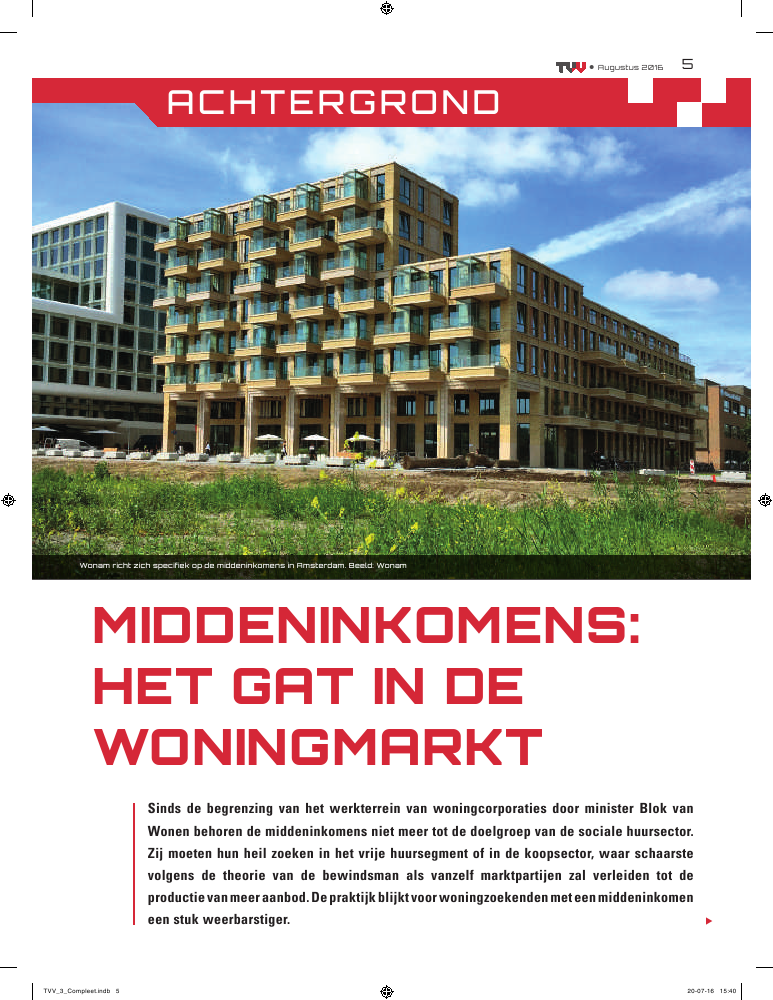 Sinds de begrenzing van het werkterrein van woningcorporaties door minister Blok van Wonen behoren de middeninkomens niet meer tot de doelgroep van de sociale huursector. Zij moeten hun heil zoeken in het vrije huursegment of in de koopsector, waar schaarste volgens de theorie van de bewindsman als vanzelf marktpartijen zal verleiden tot de productie van meer aanbod. De praktijk blijkt voor woningzoekenden met een middeninkomen een stuk weerbarstiger.
