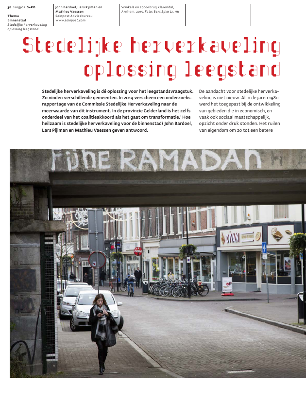 Stedelijke herverkaveling is dé oplossing voor het leegstandsvraagstuk. Zo vinden verschillende gemeenten. In 2014 verscheen een onderzoeksrapportage van de Commissie Stedelijke Herverkaveling naar de meerwaarde van dit instrument. In de provincie Gelderland is het zelfs onderdeel van het coalitieakkoord als het gaat om transformatie. Hoe heilzaam is stedelijke herverkaveling voor de binnenstad? John Bardoel, Lars Pijlman en Mathieu Vaessen geven antwoord.