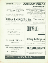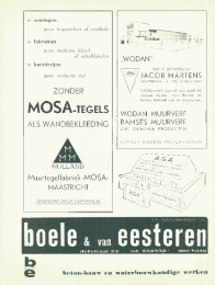 Ste 11eonOrgaan van het Nederlandsch Instituut voor Vollcshuis-vesting en Stedebouw en van den Nationalen Woningraad,waarin opgenomen de mededeelingen van den Rijks-dienst voor het Nationale Plan, en tevens gewijd aanden WederopbouwJuli-Aug. 1942 23e Jaargang no. 7/8in woningen:geen irappenbuis of vesiibulein ffabrieken:geen moderne kleed-of schafilokalenin boerderijen:geen moderne sialZONDERMOSA-TEGELSALS WANDBEKLEEDINGMMHOLLANDMuurtegelfabriek ?MOSA?MAASTRICHTLEVERBAAR DOOR DEN HANDEL,,WODAN"VERF- & LAKFABRIEKENJACOB MARTENSAMSTERDAM TEL. 87880-87893Schilderwerk zoowel voor oude alsnieuwe muren, voor binnen enbuiten, behoeft niet te stagneeren.WODAN MUURVERFRAMSES MUURVERFZIJN OLIEVRIJE PRODUCTENVRAAGT NADERE INLICHTINGENben:vanbeton-bouw en waterboawkundige werkenTekening DummyII^ + T ^VTTEKEN I NGVr--I wd JJ ?d cuworl