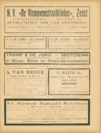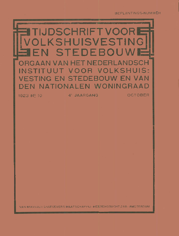 BEPLANTINGS-NUMMER^ TIJDSCHRIFTVOORIVOLKSHUISVESTINGEN STEDEBOUWORGAAN VAN HET NEDERLANDSCHINSTITUUT VOOR VOLKSHUIS:VESTING EN STEDEBOUW EN VANDEN NATIONALEN WONINGRAAD1923 N?10 4^ JAARGANG OCTOBERVAN MUNSTER'S UITGEVERS MAATSCHAPPIJ - HEERENGRACHT 248 - AMSTERDAMy(Indubeton)ONTWERPEN en UlTVOEREN vanBOUWWERKEN in STEENBETONen GEWAPEND BETONPAALFUNDEERINGENin HOUT en BETONAdviezen, berekeningen en ontwerpen kosteloosilRDiHraGU^igb/bKOiGSPUIIITelefoon: 35083Telegram-Adres: INDUBETONi^ii!iH!CABOTINEHOUTBEDERFWERENDE CREOSOOT-OLIEBEITSEN-VERF IN ALLE KLEURENHet beste ter wereld en alleendan echt en gegarandeerd, wan-Deer emballage gezegeld B. & Co.levert billijk de Fa. BUDDING & Co.CORN. TROOSTSTRAAT 59 - AMSTERDAMTelefoon 25287A. PEETERS & CaPIJTHAGORASSTRAAT 1AMSTERDAM-TEL. 22393BELAST ZICH MET HET UITVOEREN VANGECOMBINEERDEN WERKEN,GEWAPEND EN ONGEWAPEND BETON-- EN BOUWWERKEN -ilSinge I 68 - AmsterdamTELEFOON 35685 - 45234 -- NA ZES UUR TELEFOON 27630Specialiteit ifl Behangers-, Stotfeerilers- en Meubelmakers-MaleriaaRaamgarnituren - Caialogus op aanvrageFlliaal: Rotterdam, Schiekade 182IBijvoegsel van het Tijdschrift voor Volkshuisvesting, No. 10 15 October 1923NED. INSTITUUT VOOR VOLKSHUISVESTING.Woningstatistische gegevens.(Overgedrukt uit het Maandschrift van het Centraal Bureau voor de Statistiek,18e jaarg., afl. 9, 30 Sept. 1923.)Oyerzleht betreffende het bonwbedrQf oyer de maand Jull 1923.I. Woningen.GEMEENTEN EN GBOEPENVAN GEMEENTEN.Aantal woningen, waarvoor bouwvergunning verleend is, doch nog niet inuitvoering op het einde der maand. Aantal wo-Te bouwen voor rekening vanTotaal.Rijk, Provmcie,Water-schappen,Spoorwegm?iat-achapptjen.Geraeente. Woningbouw-vereenigingen. Farticulieren.Rijk, Provin-cie, Water-schappen,Spoorwegm,a b c a be a 1 b c a b c a b c a b c1 a 8 1 i 5 j 6 1 7 8 1 9 1 10 11 12 t 13 1 14 15 16 1 17 t 18 19123456AmsterdamOral. gem. Bussum, HilversumRotterdam 2) (metinbogrip vanaoek V. Holland)0ml. gem. Hillegersberg, Schie-dam, Overscliie, IJsselmonde,Pernis'9-Graveuhage0ml. gem. B\)sw(jk, Voorburg,WasaenaarUtrecht164 -1987 3)2931i9--4411082302183.547168--23282386153 ,428646124428625521676620851851061217273114717115111157445692323217941538296494245617610228932208618510612172781147171152111574456910182410- :89100ml. gem. ZuilenMljndistrlct van Zuid-LimburgNiet hierboven genoemde gem.:van 50 000-100 000 inw. metoml. gem 24541112ISvan 20000-50 000 inw. *). . .van 10000-20000 inw. . . .ben. 10000 inwTotaal .... 11 - 1 1278 - 1313 - - 2 880 92 759 5 482 92 760 44 15a -- oprichten op nieuw terrein (nieuwbouw); h- herbouw;c =; verauderen, uitbrelden of verniouwen.Geen inlichtingen werden verstrekt door de gemeenten:Bunnik, Ede, Haskerland, St. Maarten, Neer, Nieuwer-Amstel, Noord-wi)k, Nunen, Odijk, Schiebroek, Vreeswijk, Weert, Werkhoven.Te 's-Gravenhage ligt de bouw stil van 78 woningen (voorS 470 900) en die van andere burgerlijke bouwwerken (voor f 231900)voor rekening van particulieren.] . Woningen. (Vervolg.)ningen in uitvoering op het einde der maand. Voltooide en vervallen woningen gedurende de maand.Voor rekening vanTotaal.Aantal voltooidewoningen voorrekening van111.1o SsK Si31IIIra'.c^oi?fe'S?a-X>O"*lO^oCOiHrH[>O.-(C0CMOiOOOOiQi^COCOOOCO1-1CNOTO.-iiOCO00Ol"*lOCO^^'i'COfMi-HOOC100lO'^COQ?a:^oo:DCOT-HoMiOiOOOCO[>l>i?^Xt*cocol?boaO'*iOOlO0"JCOIIinIgCMO-*COOCO^OOiHCOIIIIIIIIa:COOCOCO^"*lO?--II--->*0'*rHCOr---^XOJ-^coco-C0OrHT--tflmcCC-OliCCOG0C0Ot>c5;scoo*:-*^e^*11111111T--(a''4?S?1tN0OCOCOC-O'^OCOIIOIXCOOOojcjcooCOU>Ol>COop"*C0-^^COi-HOC-1I>cot-t-iiOCOC-Or-tCOr-tff;C5OCOlOOCOI"*C(5T-I-*IIIIIIIIIIIIIIlOCOiQCi-HcooIi=?r(1)os??^>.Sft.s^?asQa=^^^,a^"SS5oao^ffic.?oas-as^he2^3rOmaaa.CDa.cose?>!ao-gwasboga?O?So;ra.?aoisOOgS?aMBSl^a33?".9.SNNg,goor1OQOS[*t>i-iiOcqClM^.18888pT3^?0CIllIV. ?DeDRIEBERGSCHEWEG 6 TELEFOON 503METSELSTEENEN VOOR ALLE BOUWWERKEN!!!met bijlevering van zachte steenen voor binnenmaren en fundeeringen tegen verminderden prijs.STRAATKLINKERS - TROTTOIRKLINKERS - VLOERKLINKERSBeschikbaar voor dirccte levering groote partijen voor straten bij vi/oningbouvi/,-- -- vt^aarop geen zwaar verkeer is tc verwachten tegen zeer lagen prijs -- -- BBHiaiJ. A. DE VRIES - HAARLEMAANNEMER VAN STUCADOOR=EN WITWERKENVOORHELMPLEIN 29 == TELEFOON No. 1656H. DE WEERS - HAARLEMSAENREDAMSTRAAT No 2 = TELEFOON 2056AANNEMER VAN GROND= EN HEIWERKENVERVOERDER VAN BOUWMATERIALEN ENZ.TROMP & DE JONG - AMSTERDAM2e VAIM SWIIMDENSTRAAT 119 - TELEFOON 22800In Bouw-, Beton en Steen-GranietwerkenA. VAN BROEKHandel in IJzer en MetalenLinnaeusparkweg 120, Amsterdam -Tel. 20877KOOPT: Allc soorten I ]zer en Metalen, Koperdraaisels,Asschen en Residu's.LEVERT : Rood-Gcelkopcr en prima Machinebrons, gc-schikt voor de krocs ; Bankatin, Rood en GeclBlad- en Stafkoper in allc maten, Bladzink,Lood cnz.ALLE SOORTEN GEGOTEN IJZER-- VOOR DE GIETERIJEN --Taxeert oude Machines, Kelels en Fabrieksinventarissen - I1DVI[Z[IIC. REITH Jr.Amsterdam - Marnixstraat 76Telef.45797Aannemer vanLood-, Zink- en RiooleeringwerkenN.V. Algemeene Houthandel MaatschappijTeL N. 1862, C. 4584, C. 4551 Minervahaven - Amsterdam Tclegram=Adrcs ALHOHAMAGroote voorraden van: allc soorten EIKEN, lEPEN, BEUKEN, POPULIEREN, TEAK, MAHONIEen verder allc gangbare Fijns en HardhoutsoortenSpccialitcit in prima POOLSCH GRENENDirecte levering uit voorraad van: DENNEN, BALKHOUT en HE IPALENImporteurs van het SPECIAAL GEDROOGDE CALIFORNISCH REDWOOD,DE houtsoort voor betimmeringen en paneelenIVTROTTOIRKliELS.BAnBETON PALENN. V. VIGOROSE CEMENT INDUSTRIE RONDEXOVALEDE METEOORDE STEEG (GLD.)TELEFOON 205-EIGEN SPOORAANSLUITING-RIOLENTUIN M UR ENPRODUCTIE 1000 M^. TEGELS PER DAGPNEUMATISCHE S T A M P I N R I C H T I N G -- PERSONEEL 100 ARBEIDERSN.V. Van den Berg & Co's MetaiandePRINS HENDRIKKADE 162-163-164iiiiiiiiiiiiiiiiiiiiiiiiiiiiiiiiiiiiiiiiiiiiiiiiiiiiiiiiiiiiiiiiiiiiiiiiiiiiiiiiiAMSTERDAMTelegram-Adres; VANBERMETATelefoon: 41642 - 46328 - 47723 - 49112. liiiiiiiiiiiiiiiiiiiiiiiiiiiiiiiiiiiiiiiiiiiiiiiiiiiiiiiiiiiiiiiiiiiiiiiiRUIME SOR