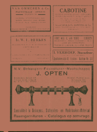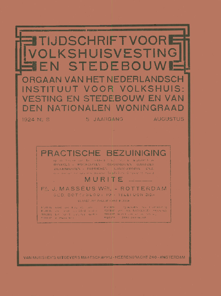 TIJDSCHRIFTVOORVOLKSHUISVESTINGEN STEDEBOUWORGAAN VAN HET NEDERLANDSCHINSTITUUT VOOR VOLKSHUIS:VESTING EN STEDEBOUW EN VANDEN NATIONALEN WONINGRAAD1924 N? 8 5* JAARGANG AUGUSTUSPRACTISCHE BEZUINIGINGop de kosten van het bekleeden van muren en plafonds inWINKELS - MAGAZUNEN - WOONHUIZEN - GARAGESZiEKENHUIZEN - FABRIEKEN - LABORATORIA - ENZ.door toepassing van ons nieuwe bepleisteringsmateriaal=: MURITE ==FA. J. MASSEUS \Nm. - ROTTERDAMGED. BOTERSLOOT 119 - TELEFOON 3186VRAAGT ONS BOEKJE OVER MURITEMURITE wordt zoo hard als steenMURITE kan direct beschilderd wordenMURITE kan direct behangen wordenMURITE is afwasclibaarMURITE is hygiSnischer dan tegelbekleedingMURITE geeft een NAADLOOZE oppervlakteMURITE krimpt niet en zet niet uitMURITE is ZEER GOEOKOOPVAN MUNSTER'S UITGEVERS MAATSCHAPPIJ - HEERENGRACHT 246 - AMSTERDAMVAN OMMEREN & Co.PAUWSTRAAT-ARNHEMTELEFOON 800SPIEGEL-, VENSTERGLAS. VERF-WAREN, GESLEPEN GLAS ZOOWELBLANK ALS VERZILVERDSPECIAAL VOORMEUBELMAKERS EN C AR0S8E R I E-FABRI KANTE NmwBBBaBaaiiRniaiaHiaaBiii^^CABOTINEI HOUTBEDERFWERENDE CREOSOOT-g OUEBEITSEN-VERF IN ALLE KLEURENS Het beste ter wereld en alleenw dan ccht en gcgarandccrd, wan-% neer emballage gezegeld B. & Co.I levert billijk de Fa. BUDDING & Co.i CORN. TROOSTSTRAAT 59 - AMSTERDAM1 Tclcfoon 23287 ^^^Fii!i!l?i!iaai!Rii!!?leiEucmeiciEi^iziiJciEtEUCicLciocmcuaaiaFRnSnEnanooiSKnsaiaiaooDiaIr. W. L. EERKES fCIV. INGENIEURTECHNISCH-BUREAU DE RUYTERKADE 46AMSTERDAMTEL. 48269IJZERGONSTRUCTIES - GEWAPEND BETONriRMA WED. M. VAN iURS - SCKIEOAMNIEUWE HAVEN 9 - Werkplaats: BR0ER8VELD 71 - Tel. 879LOOb- EN ZINKWERKERIJAMEG VOOR GAS- [N WAI[RL[IOING, L[I[N- [N MASIIEK DAKDEOEKKINGI ADVIEZEN OPMETINGEN |EnR!ii!ii!ii>fi>Rfi!Rii!Ii>i?IiSI. VERHOEF, Stucadoor(voorhecn C. J. VAN DER DRIFT)ApoHiekersdik 13, [eiden - Telefoon No. 341N. V. Behangers-Fournituren-MaatschappijJ. OPTENAmsterdam, Singel 68Telefoon 35685 en 45234Na 6 uur No. 27630Fiiiaal: RotterdamSchiekade 182Telefoon 11208Specialiteil in Behiyers-, Slolfeerilefs- en iubelmalers-MaleriaalRaamgarnituren - Catalogus op aanvragelN.V.>>DeVlamomtraiitl(lier
