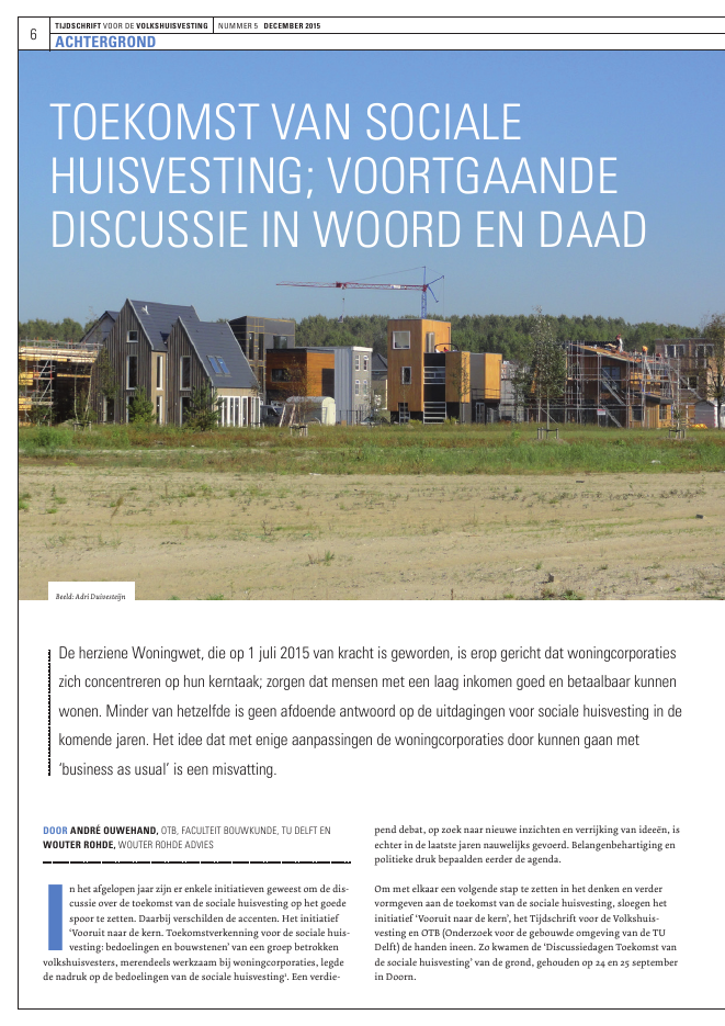 De herziene Woningwet, die op 1 juli 2015 van kracht is geworden, is erop gericht dat woningcorporaties zich concentreren op hun kerntaak; zorgen dat mensen met een laag inkomen goed en betaalbaar kunnen wonen. Minder van hetzelfde is geen afdoende antwoord op de uitdagingen voor sociale huisvesting in de komende jaren. Het idee dat met enige aanpassingen de woningcorporaties door kunnen gaan met ‘business as usual’ is een misvatting.