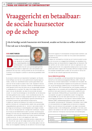 22THEMA: HOE VERDER MET DE CORPORATIESECTOR?TIJDSCHRIFT VOOR DE VOLKSHUISVESTING NUMMER 5 OKTOBER 2014DOOR ANDR? THOMSENDe huidige sociale huursectoris de resultante van anderhalveeeuw maatschappelijke strijd enoverheidsbeleid. In zijn proefschrift beschrijft WouterBeekers (2012) hoe een ooit op emancipatie gerichtevolksbeweging uiteindelijk is uitgemond in een semipublieke vast-goedsector die nog maar in weinig verschilt van de commerci?le con-currentie en zijn draagvlak in politiek en samenleving goeddeels heeftverspeeld.Nu de sector onder druk van beperkende maatregelen van Brussel,forse heffingen van het rijk en een parlementaire enqu?te begint tekraken, worden van verschillende kanten opinies geventileerd overwaar het met de sociale huursector heen moet. Opvallend is dat dediscussie vooral gaat over instituties, markten en beleidssystemen envooral gevoerd wordt vanuit de status quo en de gevestigde belangenin vastgoedsector en overheid. De vraag of de huidige sociale huur-sector wel aan de behoeften van deze en de komende tijd beant-woordt - en vooral hoe de belangen en de behoeften van de bewonershet beste gediend kunnen worden - komt onvoldoende aan bod. Endat is raar, want vanuit het huidige perspectief naar een meer op zelf-redzaamheid en minder op overheidssteun gerichte samenleving, isde sociale huursector een paternalistisch anachronisme.In plaats van mede op het belang en het welzijn van de bewonersgerichte instituties zijn woningcorporaties steeds meer grootschaligevastgoedbedrijven geworden die nu - net als in veel andere landen - inde marge van armenzorg en maatschappelijk werk dreigen te belan-den, met al of niet daarnaast een marktgerichte verdienpoot. Hoewelde omvang van de Nederlandse sociale huursector vooralsnog grootgenoeg is om het risico op marginalisatie tot ziek-zwak-en-nooddruftigte beperken, zal de scheiding tussen wel of geen keuzevrijheid onge-twijfeld toenemen. En dat is wel degelijk een re?el risico.Om dat te voorkomen moeten corporaties opnieuw uitgevonden wor-den. Op zich kan veel van de huidige sociale verhuur ook door com-merci?le verhuurders geleverd worden; in de praktijk gebeurt dat ook.Maar voor de toegelaten instelling van de toekomst moet de lat hoger.De enorme opgave om de bestaande woningvoorraad te beheren, aante passen en duurzamer te maken kan niet zonder echte deelnamevan de bewoners.In plaats van woningverhuur als doel op zich moet de sociale huursec-tor zich omvormen tot vraaggerichte faciliteerder van betaalbare huis-vesting op basis van keuzevrijheid en zeggenschap van bewoners. Datkan vari?ren van een andere manier van werk en organisatie en voor-zichtige experimenten met co?peratieve beheervormen tot een partici-patiemodel waarin volgens Adri Duivesteijn (2013) de huidige huurdersde werkelijke aandeelhouders worden van het wonen en dat op ter-mijn leidt tot een zichzelf organiserende samenleving.Keuzevrijheid als grondslagNog ziet zo lang geleden vormde keuzevrijheid het breed gesteundeleitmotif van het volkshuisvestingsbeleid (Remkes, 2001), maar daarbleef het bij; concrete implementatie in het beleid vond niet plaats. Tenonrechte, want keuzevrijheid is bepalend voor de positie van consumen-ten, op de woningmarkt middels de `exit' en als bewoner middels`voice' (Hirschman 1970). Keuzevrijheid kan niet los gezien worden vanzeggenschap en het universele recht op zelfbeschikking. Zeggenschapbetreft de mate waarin bewoners invloed kunnen uitoefenen op deeigen woonsituatie. Zelfbeschikking en keuzevrijheid zijn essenti?levoorwaarden voor geluk en tevredenheid, zowel in het algemeen(Vermea 2009), als voor de mate waarin bewoners hun woning enwoonomgeving waarderen en zich daarvoor verantwoordelijk voelen(Blokland 2009). Leefbaarheidsproblemen ontstaan vooral waar dievoorwaarden niet aanwezig zijn. Participatie in het beheer is een middelom de keuzevrijheid en de zeggenschap van bewoners te vergroten.Bezien vanuit de bewoner kan participatie in de eigen woonsituatieverdeeld worden in drie hoofdaspecten: participatie in het risico, parti-cipatie in het beheer en de mate van collectiviteit. Uitgezet op 3 assenop een schaal van minimaal tot maximaal levert dit 6 beheeropties:minimaal: maximaal:X. RISICO: geen risico risicodragendY. BEHEER: ontzorgd zelfwerkzaamheidZ. COLLECTIVITEIT: individueel collectiefVraaggericht en betaalbaar:de sociale huursectorop de schopAls de huidige sociale huursector niet bestond, zouden we het dan zo willen uitvinden?Dat valt zeer te betwijfelen.23THEMA: HOE VERDER MET DE CORPORATIESECTOR?TIJDSCHRIFT VOOR DE VOLKSHUISVESTING NUMMER 5 OKTOBER 2014Elk optie kent eigen voor- en nadelen en ook onderlinge voorwaarden:X. Risicoparticipatie omvat de mate waarin de bewoner financieel/economisch risico draagt, hetgeen normaliter verbonden is met demate van invloed en zeggenschap: geen risico betekent ook geeninvloed, maximaal risico maximale zeggenschap. (PM: hoewel voor dehand liggend wordt hier met opzet niet over huur of koop gesproken).Y. Beheerparticipatie omvat de mate waarin de bewoner deelneemt inhet beheer, en ook dit is verbonden met invloed en keuzevrijheid: pas-sief ontzorgd is nu de standaard met minimale keuzeruimte; hoe meerzelfwerkzaam hoe meer keuzevrijheid.Z. Collectiviteit omvat de mate waarin er rechten aan een collectiefvan bewoners zijn toebedeeld; en dus met de mate waarin al of nietcollectief risico, invloed en zeggenschap worden gedeeld.Gecombineerd levert dit een 8-tal mogelijke beheervormen op:A. Platte verhuur:Dit is de huidige situatie, standaard bij commerci?le verhuurders enook bij de meeste woningcorporaties: geen risico maar ook geen zeg-genschap; minimale zorg voor beheer en onderhoud maar ook minima-le keuzevrijheid; huurders hebben een individuele relatie met de ver-huurder, omgekeerd gelden aanvullend collectieve rechten en plichten.Het vrijwaren van alle risico's en zorg (full lease) is echter bepaald nietgratis. Door het niet ge-bruiken van de betrokkenheid en de zelfred-zaamheid van 