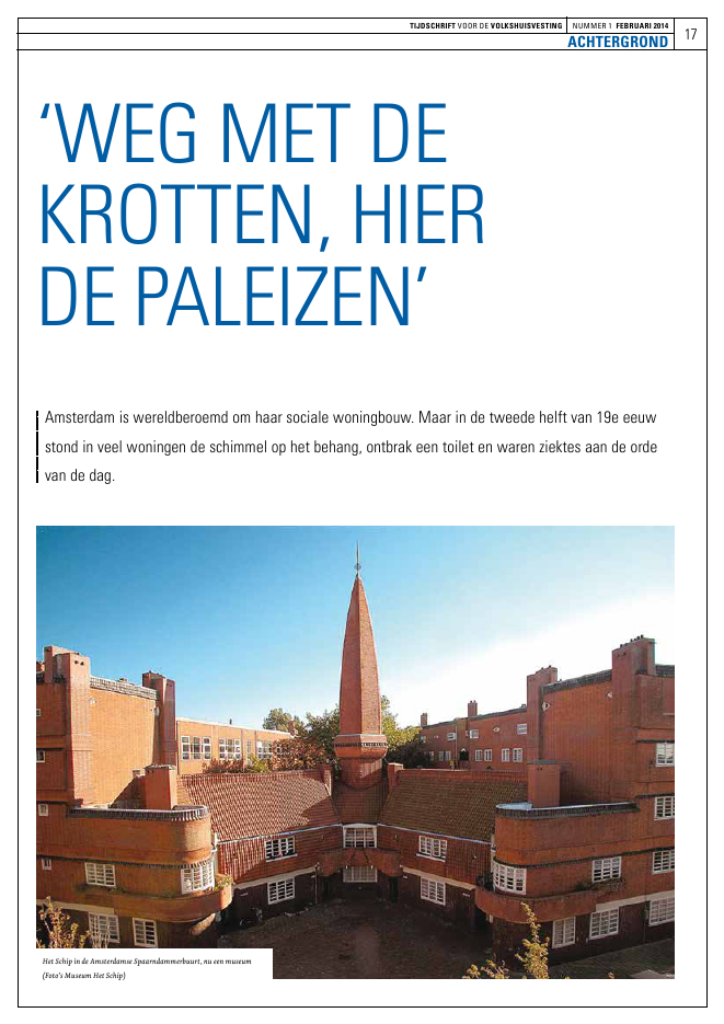 17TIJDSCHRIFT VOOR DE VOLKSHUISVESTING NUMMER 1 FEBRUARI 2014ACHTERGROND`WEG MET DEKROTTEN, HIERDE PALEIZEN'Amsterdam is wereldberoemd om haar sociale woningbouw. Maar in de tweede helft van 19e eeuwstond in veel woningen de schimmel op het behang, ontbrak een toilet en waren ziektes aan de ordevan de dag.HetSchipindeAmsterdamseSpaarndammerbuurt,nueenmuseum(Foto'sMuseumHetSchip)18ACHTERGRONDTIJDSCHRIFT VOOR DE VOLKSHUISVESTING NUMMER 1 FEBRUARI 2014DOOR TON HEIJDRA, MUSEUM HET SCHIPDe Nederlandse volkshuisvesting is internationaal ver-maard. Uit de hele wereld komt men kijken naar de arbei-derspaleizen die hier de afgelopen eeuw gebouwd zijn.Amsterdam werd ooit wel het `mekka van de volkshuis-vesting `genoemd. Het was vooral de ring 20-40 met deAmsterdamse School architectuur die tot de verbeelding sprak.Museum Het Schip in Amsterdam probeert de geschiedenis van devolkshuisvesting en de Amsterdamse School levend te houden. Sindskort is het museum zelfs verrijkt met een nagebouwd krotje uit deperiode van v??r de Woningwet, om bezoekers duidelijk te maken wel-ke verbeteringen in de volkshuisvesting tot stand zijn gekomen.In de tweede helft van 19e eeuw waren de woonomstandigheden inAmsterdam ronduit schrijnend. De snelle industrialisatie trok velenvan het platteland naar de stad, maar het was moeilijk om aan een goe-de en betaalbare woning te komen. De nieuwkomers waren aanvanke-lijk vooral aangewezen op wijken als de Jordaan en de OostelijkeEilanden. Hier kon men terecht in donkere stegen, ook wel gangengenoemd. De woningen waren klein, waarvan sommige zich halfonder de grond bevonden, de zogenaamde kelderwoningen. Ziektes alsmalaria, cholera en tuberculose tierden welig.Martha Brouwer heeft in haar boek Een kind groeit op treffendbeschreven hoe het er in een willekeurig gezin aan toe ging. Haar ver-haal gaat over de tiende spruit van het gezin Stam die in een kleinetussenkamer zonder ramen, een zogenaamde alkoof, van een tweedebovenhuis in de Kleine Kattenburgerstraat zijn eerste levenslicht aan-schouwde. Hij was een mager scharminkel, niemand gaf een cent voorzijn levenskansen. Zo vroeg de kleine Ali of ze mee mocht om haar pasgeboren broertje te begraven, `want bij de vorige begrafenis warenGrietje en Jan mee geweest'. Kindersterfte was dan ook schering eninslag. Wonder boven wonder bleef de hoofdpersoon van het boekleven en zou met de bijnaam Bul uitgroeien tot een stevige jongen.GEZONDHEIDSCOMMISSIEHet mag dan een roman zijn, ook in offici?le onderzoeken kwamendezelfde woonomstandigheden naar voren. In een rapport uit 1855werden de kelderwoningen `holen der mensen' genoemd. DeGezondheidscommissie constateerde in 1874 grote wantoestanden inAmsterdam. Er werden in de hele stad vijfduizend kelderwoningengeteld waarvan op de Oostelijke Eilanden 368 kelders met gezamenlijk1.628 bewoners. Een onderzoek van de AmsterdamscheBestuurdersbond kwam een aantal jaren later tot dezelfde onthutsendeconclusie. In het boekje Krotten en Sloppen, dat in 1901 verscheen enwaarvan tekenaar Albert Hahn de illustraties verzorgde, telde deschrijver Louis M. Hermans een groot aantal onbewoonbare kelderwo-ningen in het hartje van de stad, de Jordaan en op de OostelijkeEilanden. In veel woningen stond de schimmel op het behangsel enwas de zoldering door de slechte ventilatie zwart van de rook. Zonkwam er bijna niet binnen. Het was er vochtig en er hing een sterkegrondlucht. Er was geen wc en de bewoners kieperden de poepdoossoms gewoon leeg in de gracht. In dikke zwarte letters schreef hij `Hetkan niet genoeg herhaald worden, dat een woning niet in den grond,maar op den grond behoort te worden gebouwd.'DE PIJPVoor de arbeiders werden intussen wel nieuwe woningen gebouwd,maar de kwaliteit hiervan hield te wensen over. Een uitbreidingsplanvan stadsingenieur J.G van Niftrik om buiten de grachtengordel nieu-we wijken met veel groen te realiseren werd in 1868 niet door degemeenteraad aangenomen. Daarvoor in de plaats kwam in 1877 eenDe`boeg'vanHetSchip19ACHTERGRONDTIJDSCHRIFT VOOR DE VOLKSHUISVESTING NUMMER 1 FEBRUARI 2014veel eenvoudiger plan van de directeur van Publieke Werken, J. Kalff.Diens plan volgde grotendeels het oude sloten- en padenpatroon vande polder, waardoor de bekende lange, smalle straten van de 19e eeuw-se wijken, zoals de Pijp, ontstonden. Hier werden vooral arbeiderswo-ningen gebouwd, die niet te veel mochten kosten. De bouw werd ookwel revolutiebouw genoemd. Deze term houdt verband met het feitdat er niet meer voor een directe opdrachtgever gebouwd werd, maarvoor een anonieme markt: een revolutie in het bouwproces.Het ging vaak om grondexploitanten die zich verenigden in exploita-tiemaatschappijen. Om te bouwen leenden zij in veel gevallen geld. Zijwilden zo min mogelijk rente betalen en daarom zo snel mogelijkaflossen. Op de kwaliteit van de huizen werd bezuinigd. De bouwersgebruikten vaak nat hout, slechte mortel of onvoldoende fundering.Ook werkte men haastig: bij vorst werd regelmatig doorgewerkt. Hetgevolg was dat met enige regelmaat huizen al tijdens de bouw instort-ten. Zo verloren op 21 september 1876 twee arbeiders het leven bij debouw van twee huizen aan de Ferdinand Bolstraat. De gemeente steldenaar aanleiding van het ongeluk wel enkele bouwopzichters aan, maartoch ging het nog regelmatig mis. In de Willibrordusstraat, de PieterNieuwlandstraat en de Da Costakade stortten huizen al tijdens of kortna de bouw in.DE VEREENIGING TEN BEHOEVE DER ARBEIDERSKLASSEHet was niet allemaal kommer en kwel. Er werden ook goede arbei-derswoningen gebouwd. Het initiatief ging vaak uit van welgesteldenotabelen, die vanuit hun christelijke of liberale opvattingen zich hetlot van de arbeider aantrokken. Hun inspiratie haalden ze uit het bui-tenland, waar initiatieven voor de bouw van zogenaamde utopistischewoon-werkprojecten waren gerealiseerd. Een beroemd voorbeeld wasde weverij van Robert Owen in New Lanark in Schotland. Ook medici,onder wie Samuel Sarphati, hadden hun invloed. Zij wezen er op dat ereen