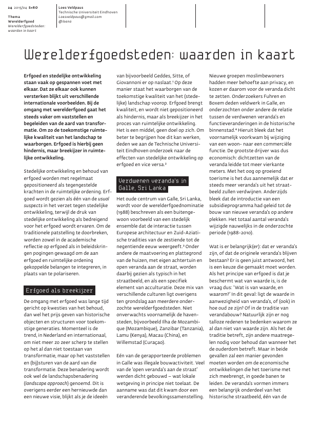 Erfgoed en stedelijke ontwikkeling staan vaak op gespannen voet met elkaar. Dat ze elkaar ook kunnen versterken blijkt uit verschillende internationale voorbeelden. Bij de omgang met werelderfgoed gaat het steeds vaker om vaststellen en begeleiden van de aard van transfor­matie. Om zo de toekomstige ruimte­lijke kwaliteit van het landschap te waarborgen. Erfgoed is hierbij geen hindernis, maar breekijzer in ruimte­lijke ontwikkeling.